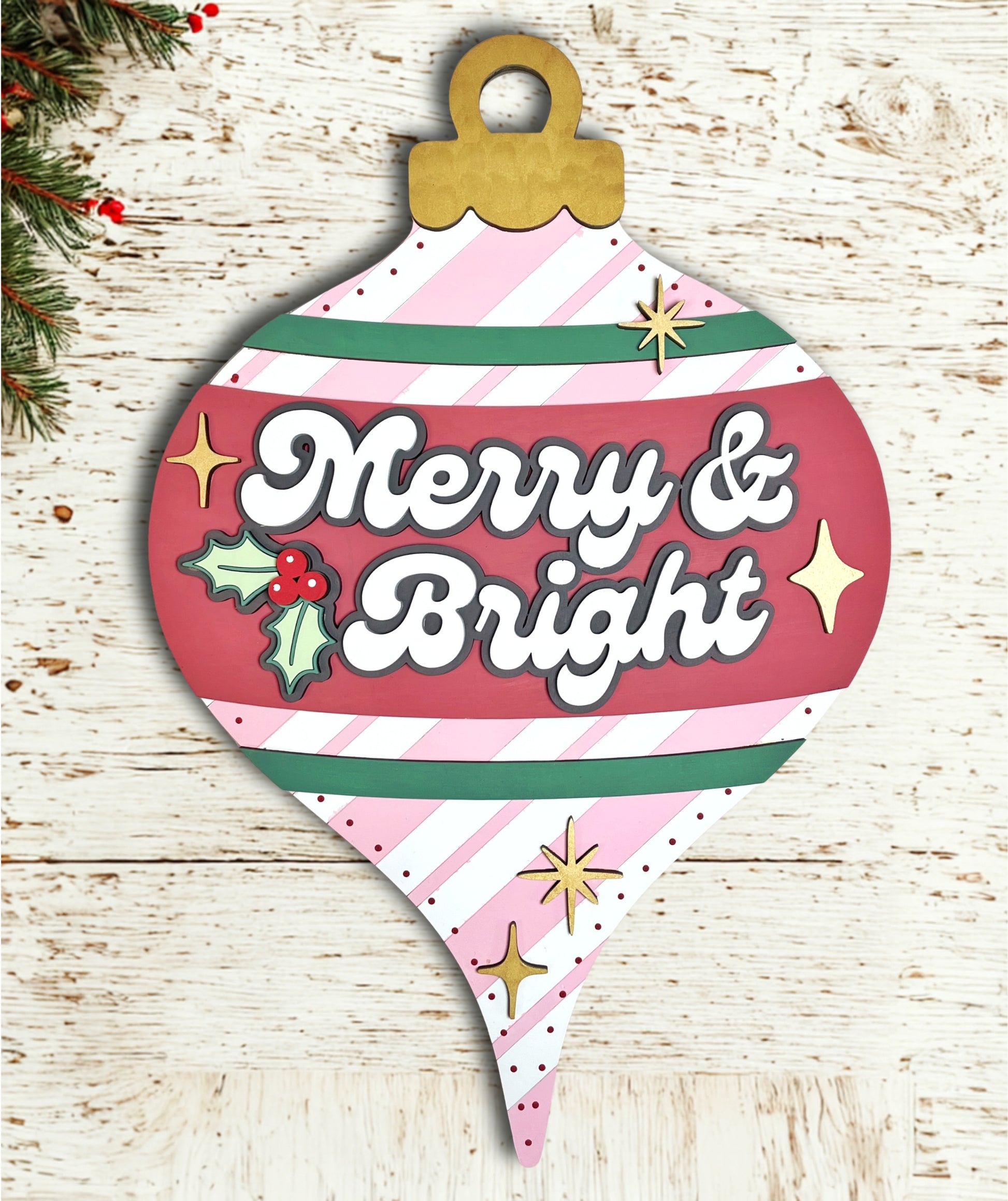 ¡Transforma tu espacio con este encantador adorno retro para puerta! Perfecto para la temporada navideña, este diseño "Merry & Bright" le da un toque nostálgico a cualquier entrada. Únete a nuestro próximo taller de pintura para una experiencia divertida y creativa, o cómpralo como kit "llévalo y crea" para pintar en casa a tu propio ritmo. Ya sea que estés haciendo manualidades con amigos o disfrutando de una sesión creativa en solitario, esta encantadora pieza está lista para contagiar la alegría navideña. ¡Un detalle festivo tan divertido de crear como de exhibir!